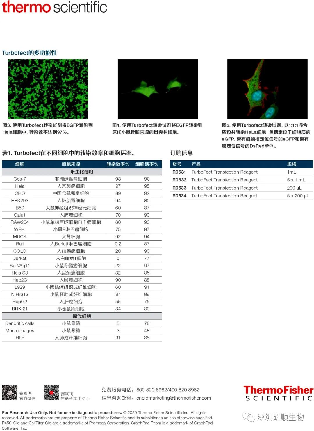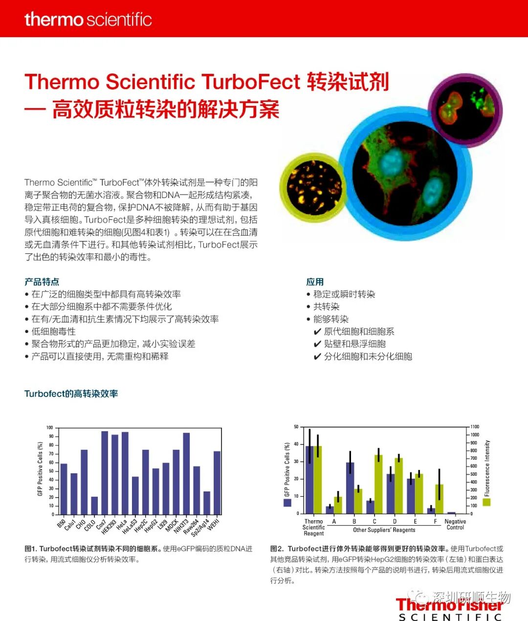 TurboFect Reagent 是转染多种细胞的理想选择,包括原代细胞和难以转染的细胞。